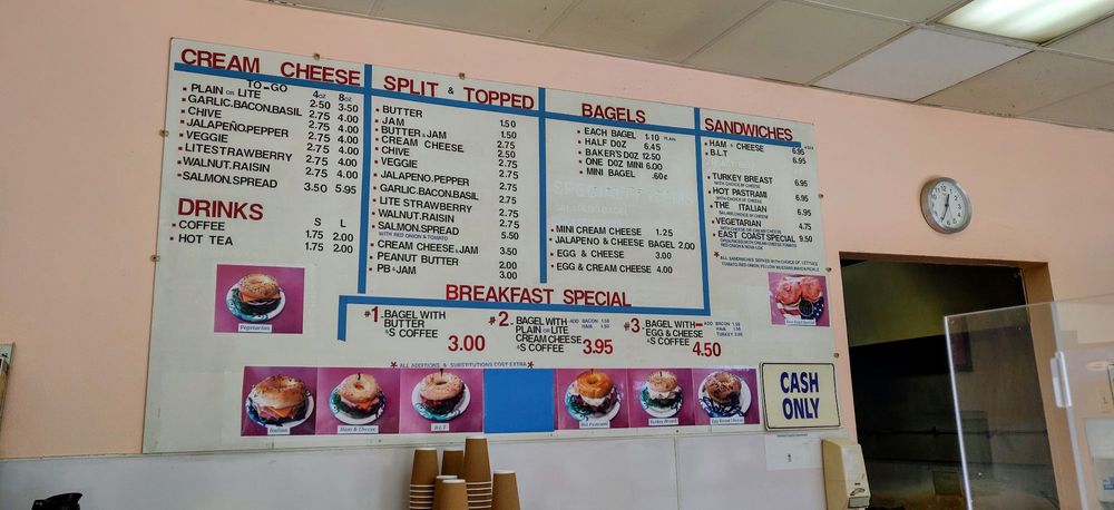 The menu features a variety of bagels, including classic options like everything, sesame, and blueberry, all priced reasonably. You can enjoy them with an array of delectable spreads like jalapeno cream cheese, garlic-bacon-basil spread, and more. One standout is the everything bagel filled with egg, bacon, and cheese, praised for its perfect balance of flavors.
